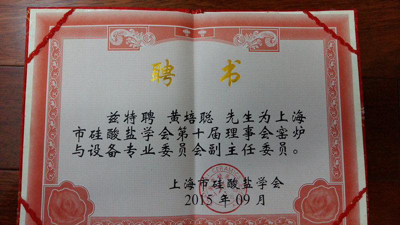 公司總經(jīng)理黃培聰當(dāng)選為上海硅酸鹽學(xué)會第十屆理事會窯爐與設(shè)備專委會副主任